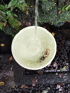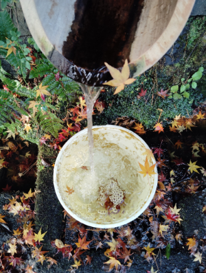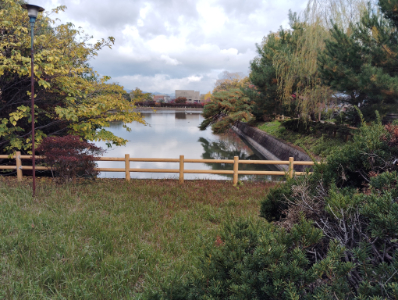 水は本来、写真の下方にあるパイプを通じて池に流すはずが、落ち葉や泥で詰まってます。なので写真の右方にある別のパイプから流しています。パイプ内の落ち葉などを引っかき出すのはかなり難しそうです。 ![]()